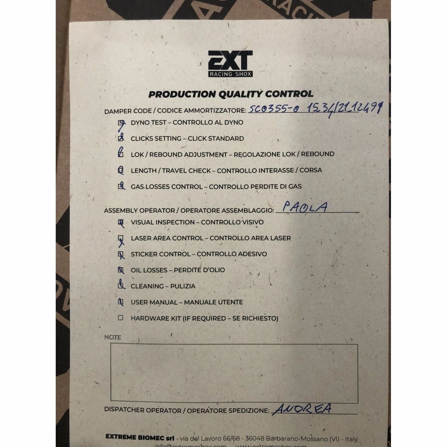 | Blocage | Sur la fourche / Amorto |